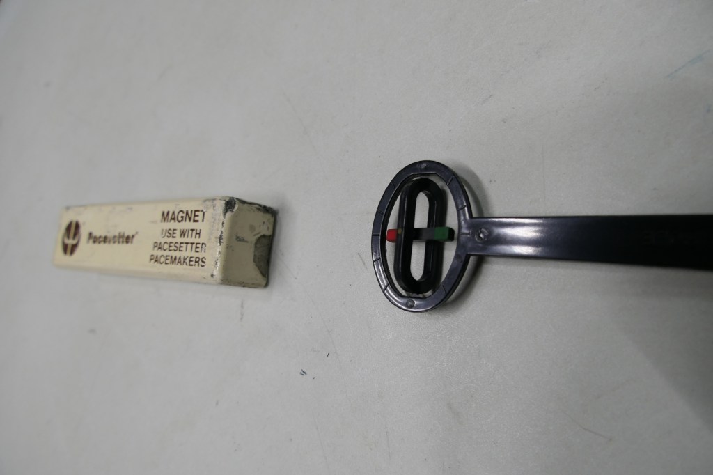 This is a magnet detector and it’s currently detecting a magnet, pointing at the pole.